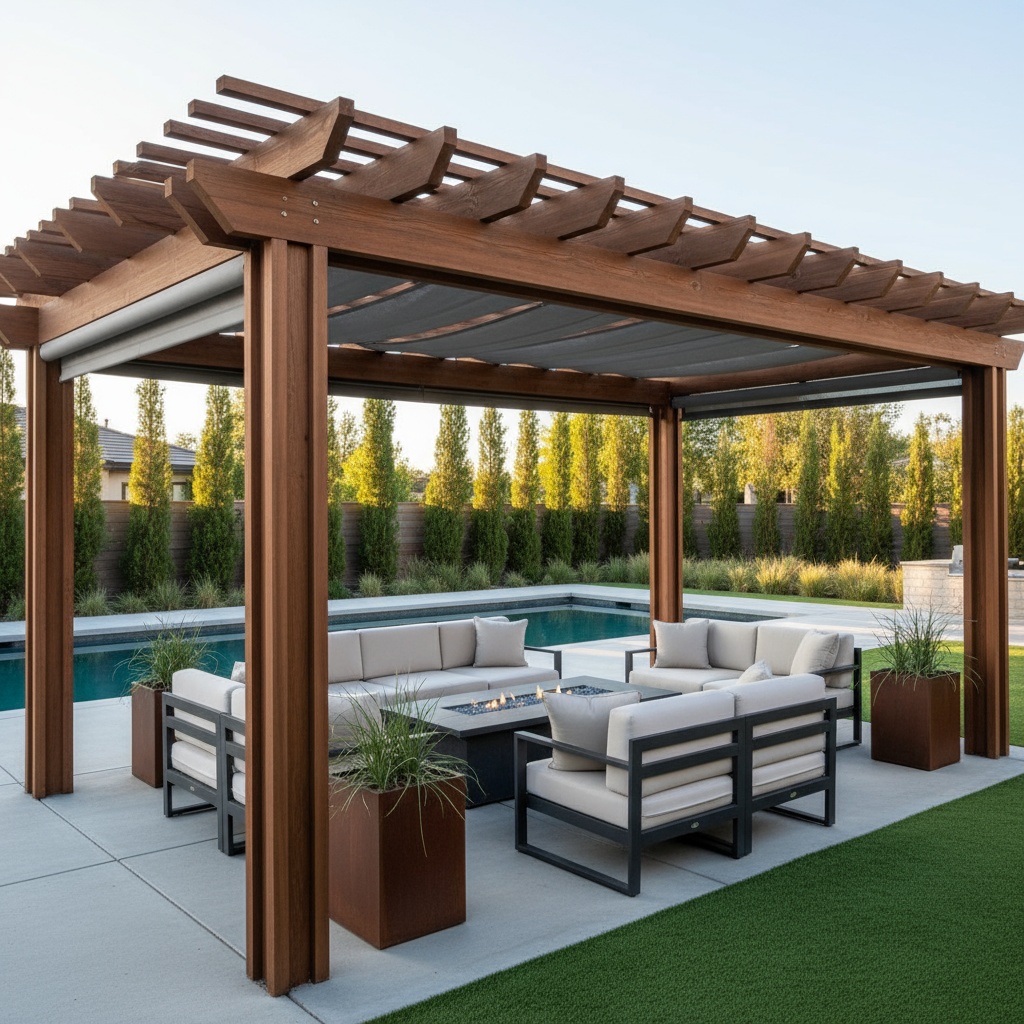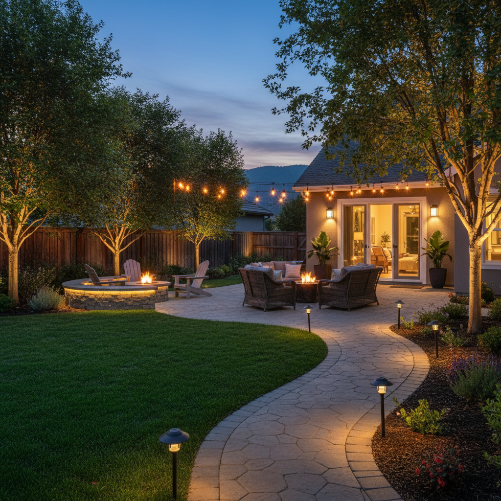 Extend your enjoyment into the evening with integrated patio lighting, including path lights, accent lights, and under-cap illumination. We also offer accessories like retractable screens and privacy walls to enhance your outdoor experience. Our solutions are designed for beauty, safety, and low maintenance.